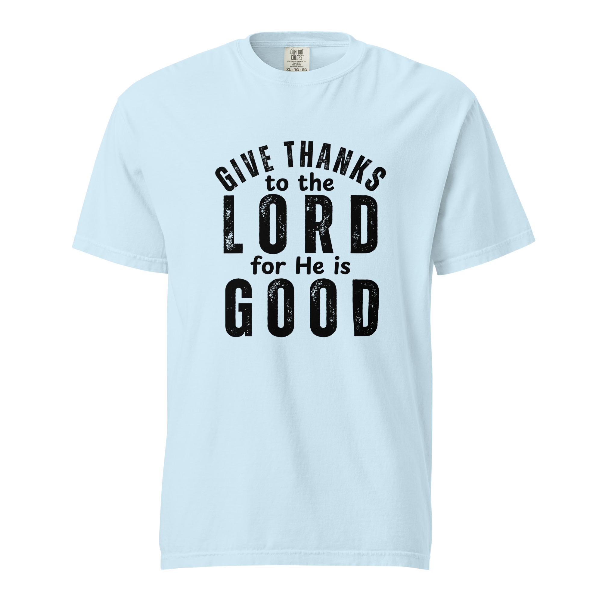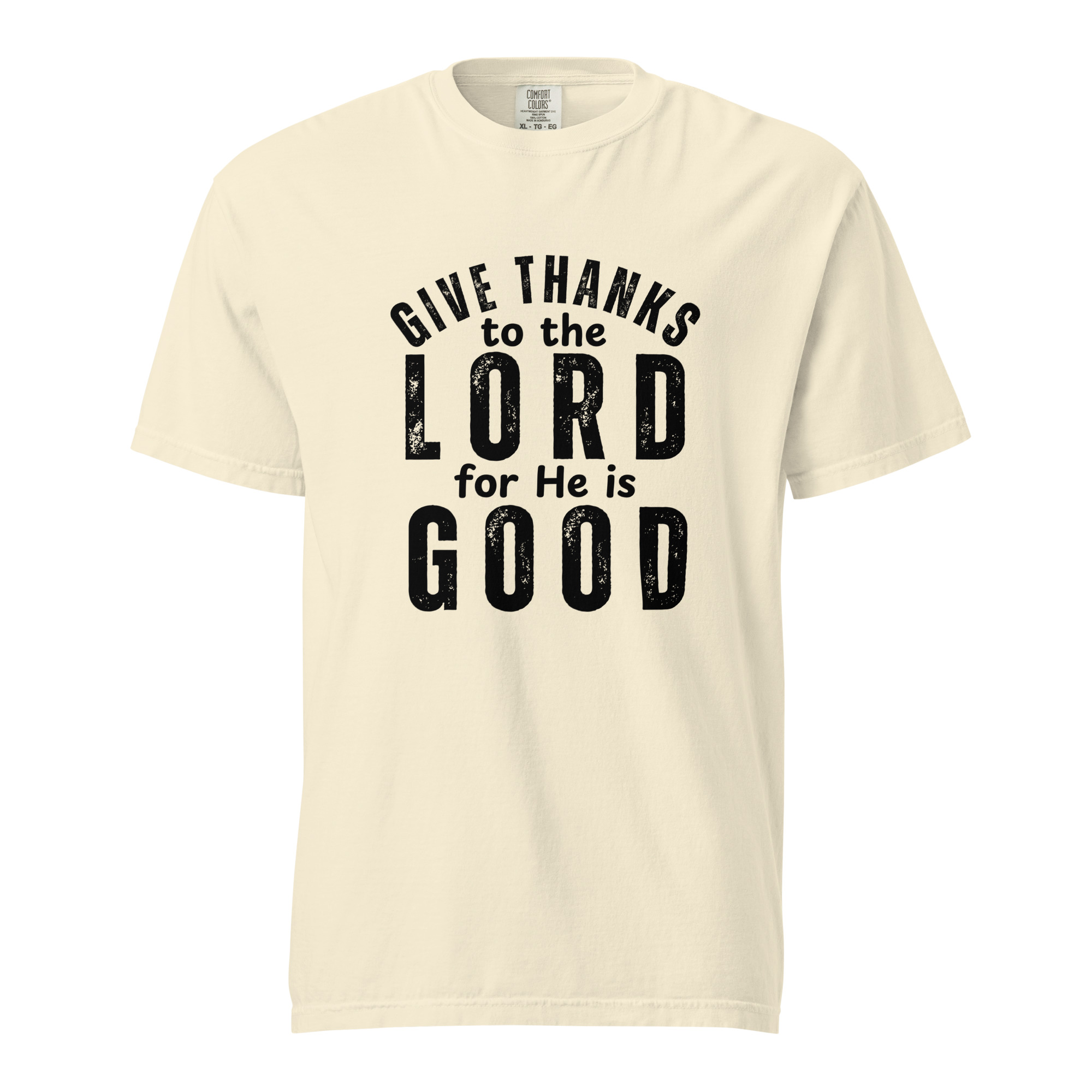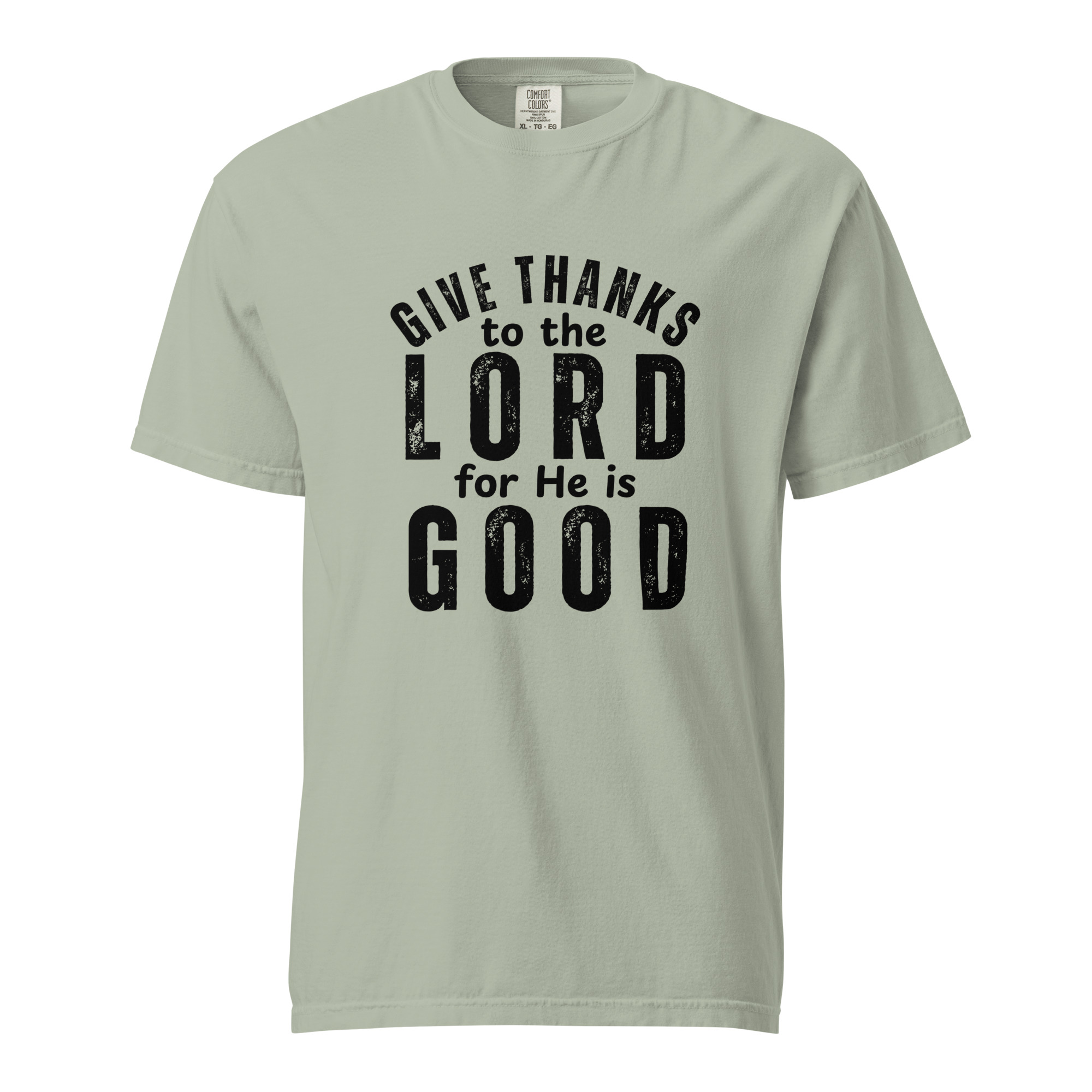 Express your faith with our premium Christian Heavyweight T-Shirt featuring the powerful words of Psalm 136:1: “O give thanks to the Lord; for He is good.”