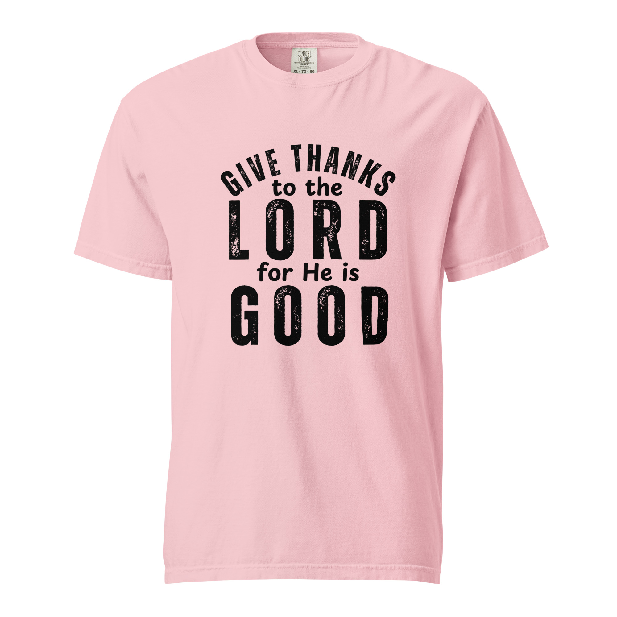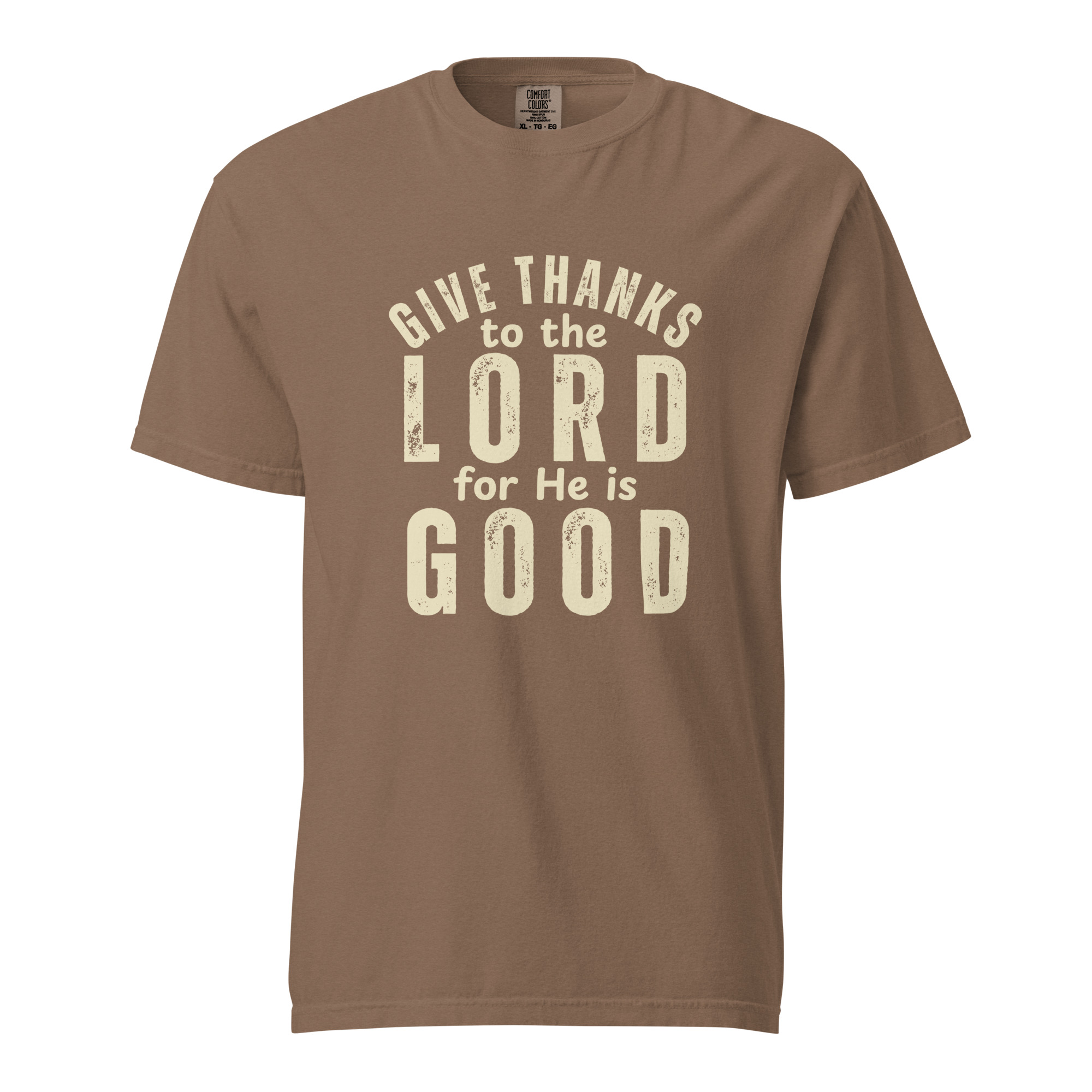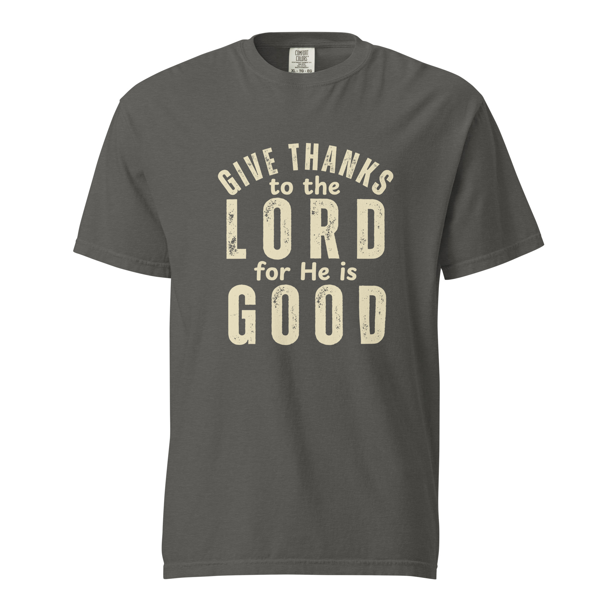 Express your faith with our premium Christian Heavyweight T-Shirt featuring the powerful words of Psalm 136:1: “O give thanks to the Lord; for He is good.”