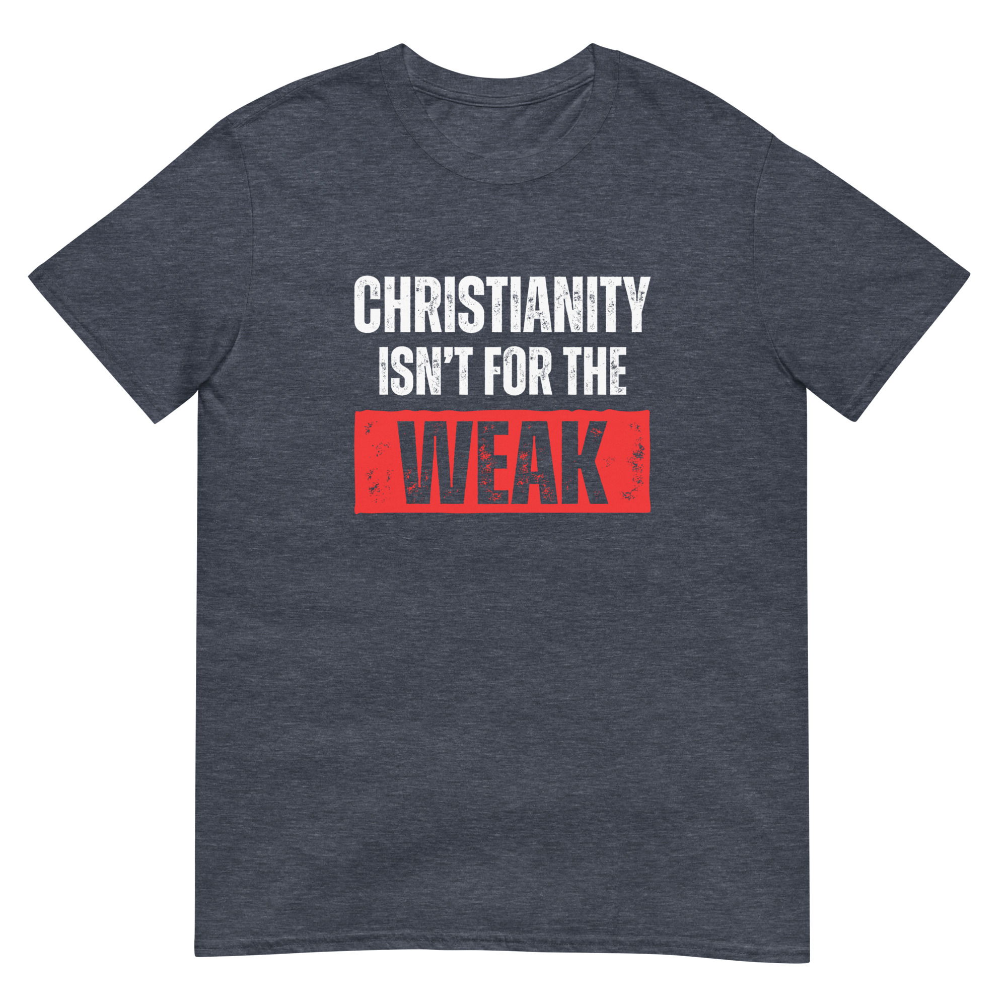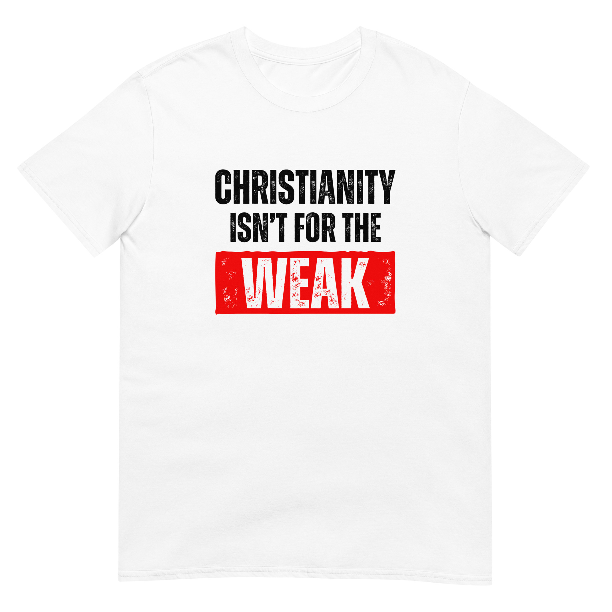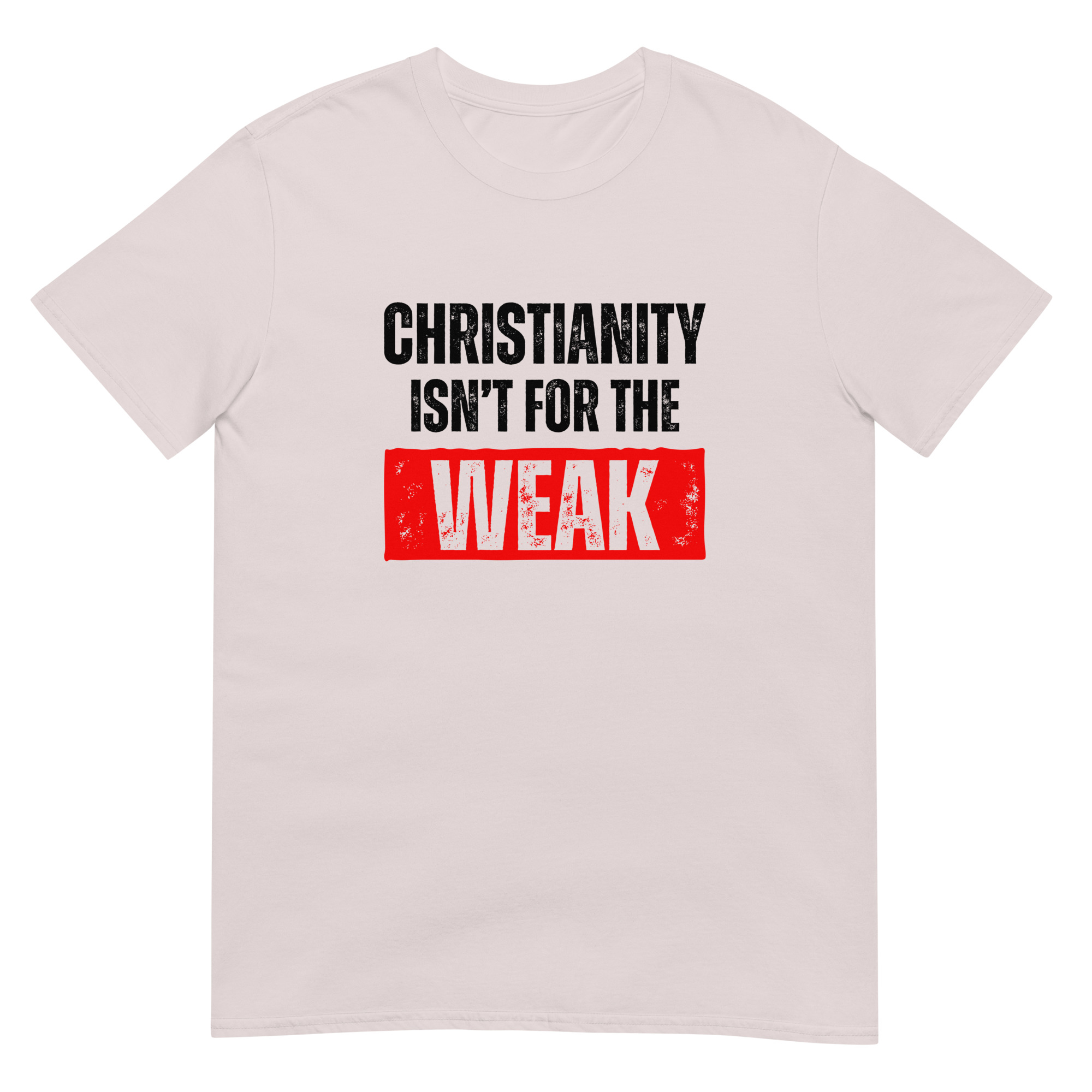 Show your strength in faith with this Christian “Christianity isn’t for the weak” T-shirt. Printed on the high-quality Gildan 64000 Softstyle Tee, it delivers a perfect blend of comfort, durability, and bold design. The grunge-style lettering gives this Christian shirt an edgy streetwear look, making it more than just apparel—it’s a statement of courage, perseverance, and faith.