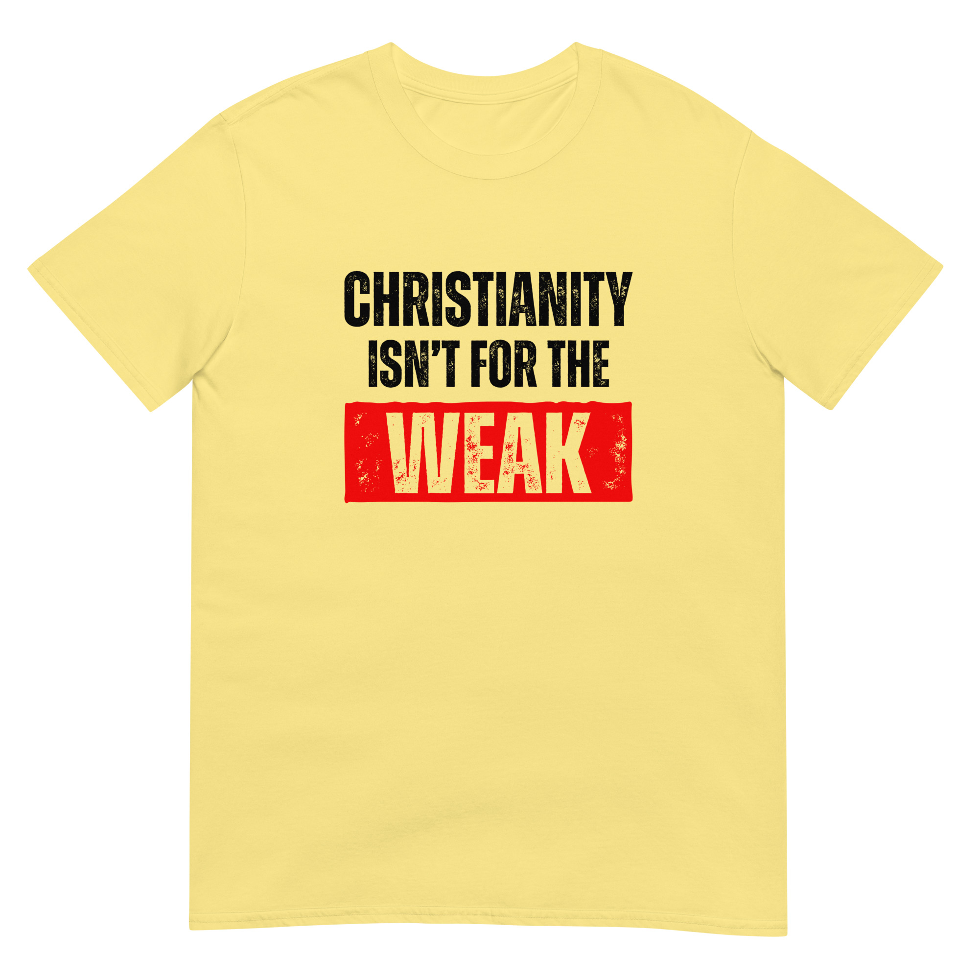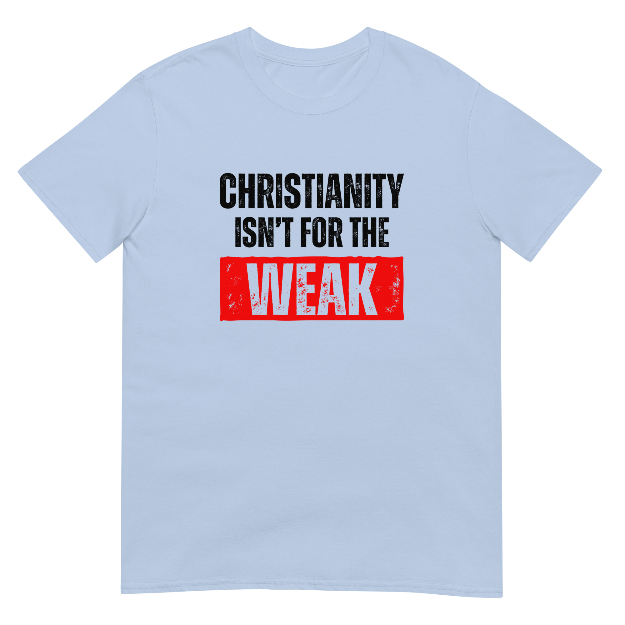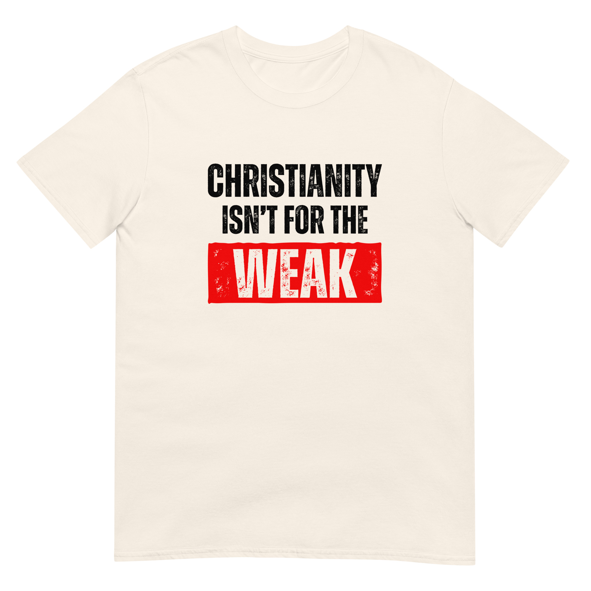 Show your strength in faith with this Christian “Christianity isn’t for the weak” T-shirt. Printed on the high-quality Gildan 64000 Softstyle Tee, it delivers a perfect blend of comfort, durability, and bold design. The grunge-style lettering gives this Christian shirt an edgy streetwear look, making it more than just apparel—it’s a statement of courage, perseverance, and faith.