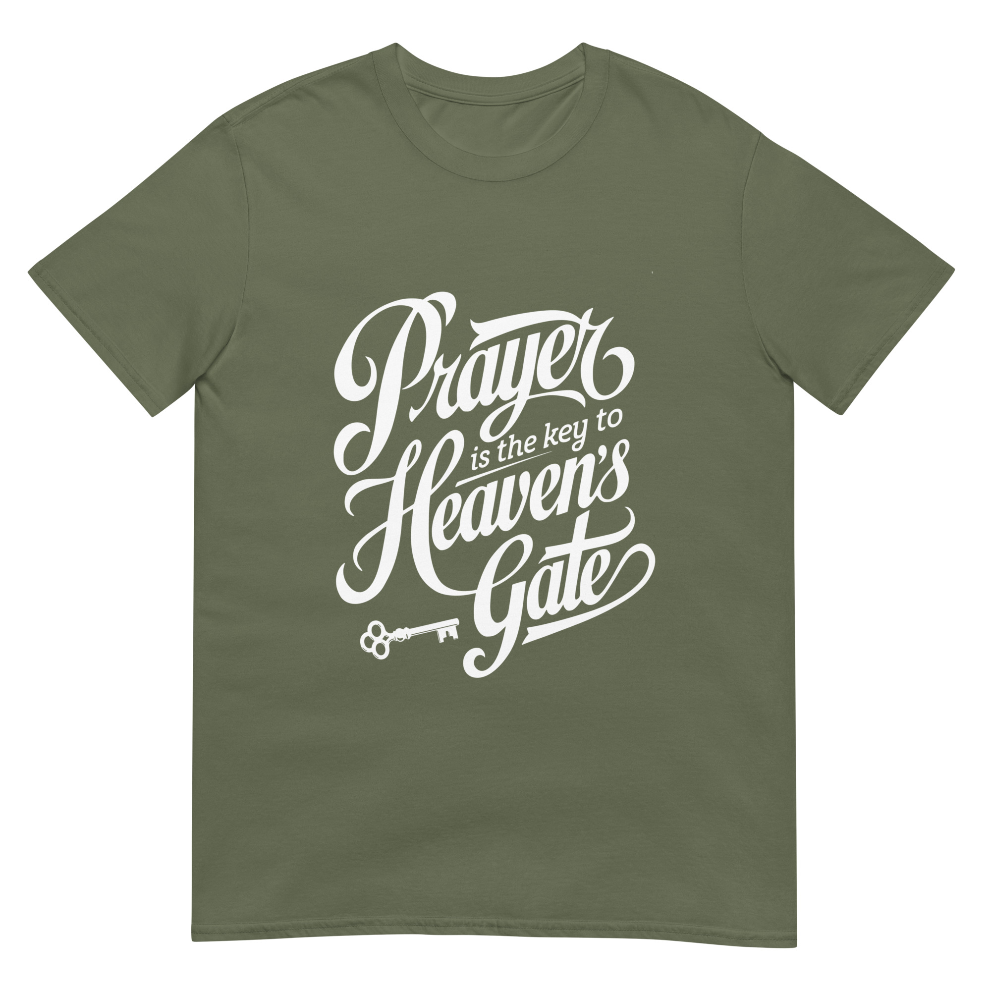 This “Prayer Is the Key to Heaven’s Gate” shirt combines timeless spiritual wisdom with modern style. A Tee for believers seeking to embrace their faith and share its message of hope. Perfect for church groups, prayer groups, prayer meetings, or personal daily inspiration.