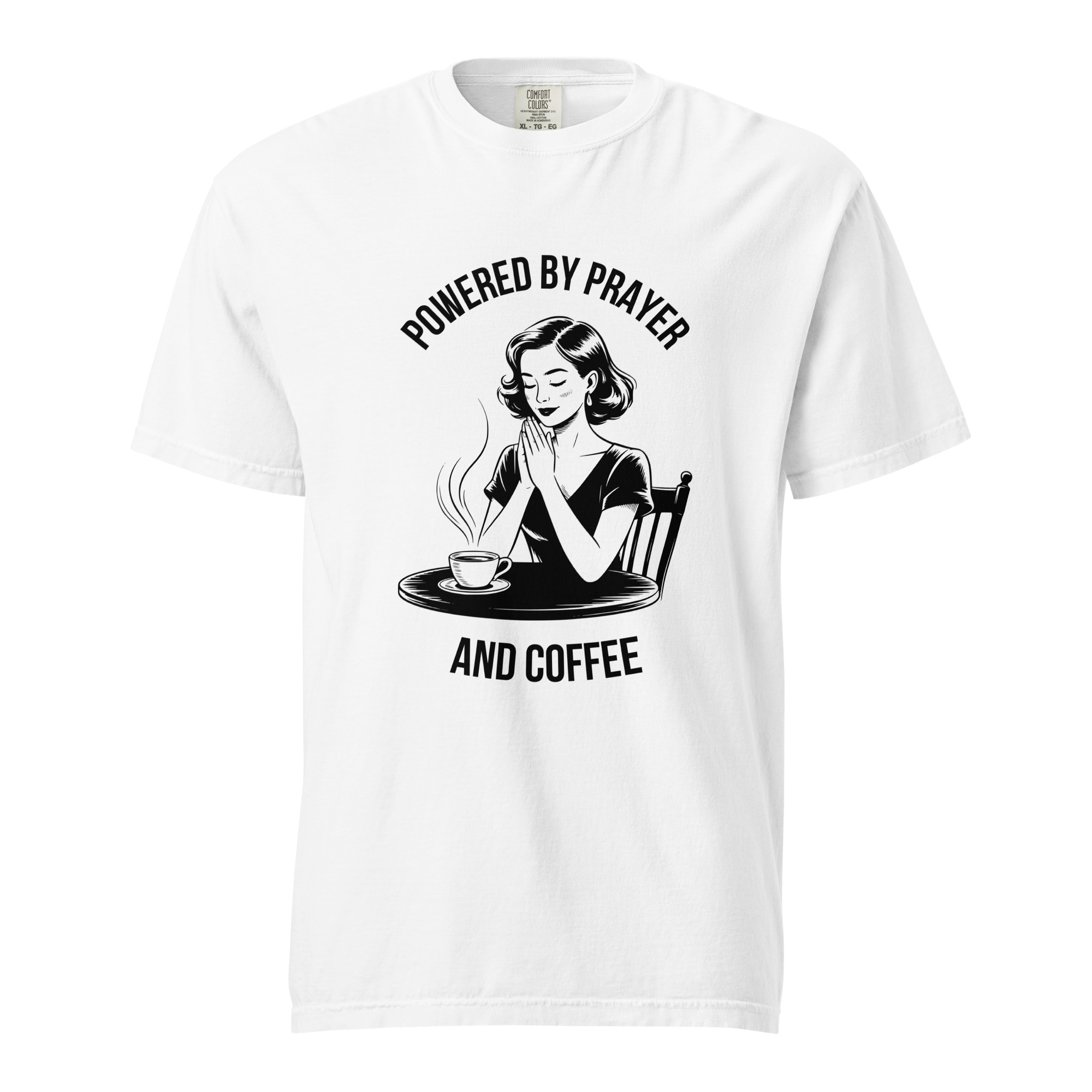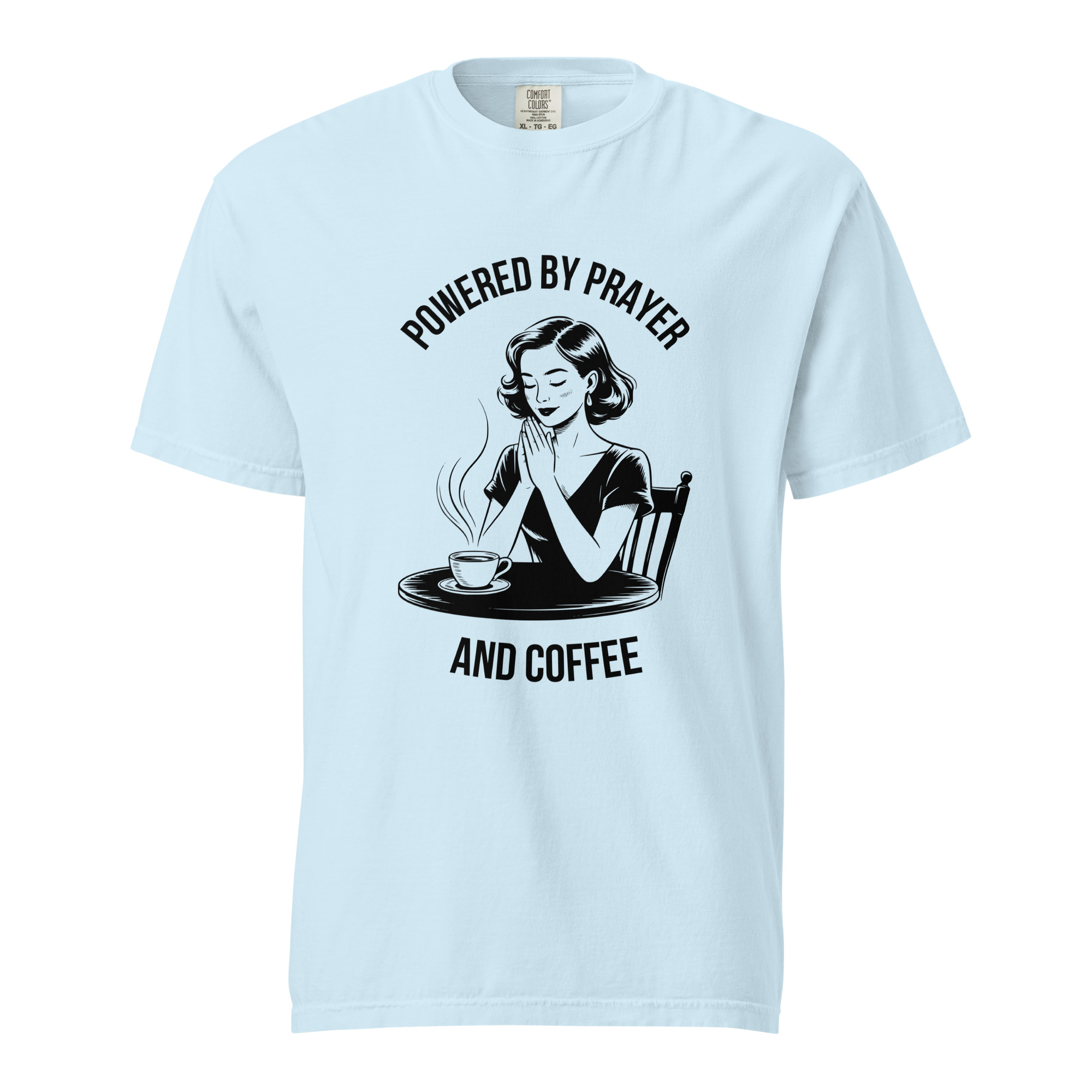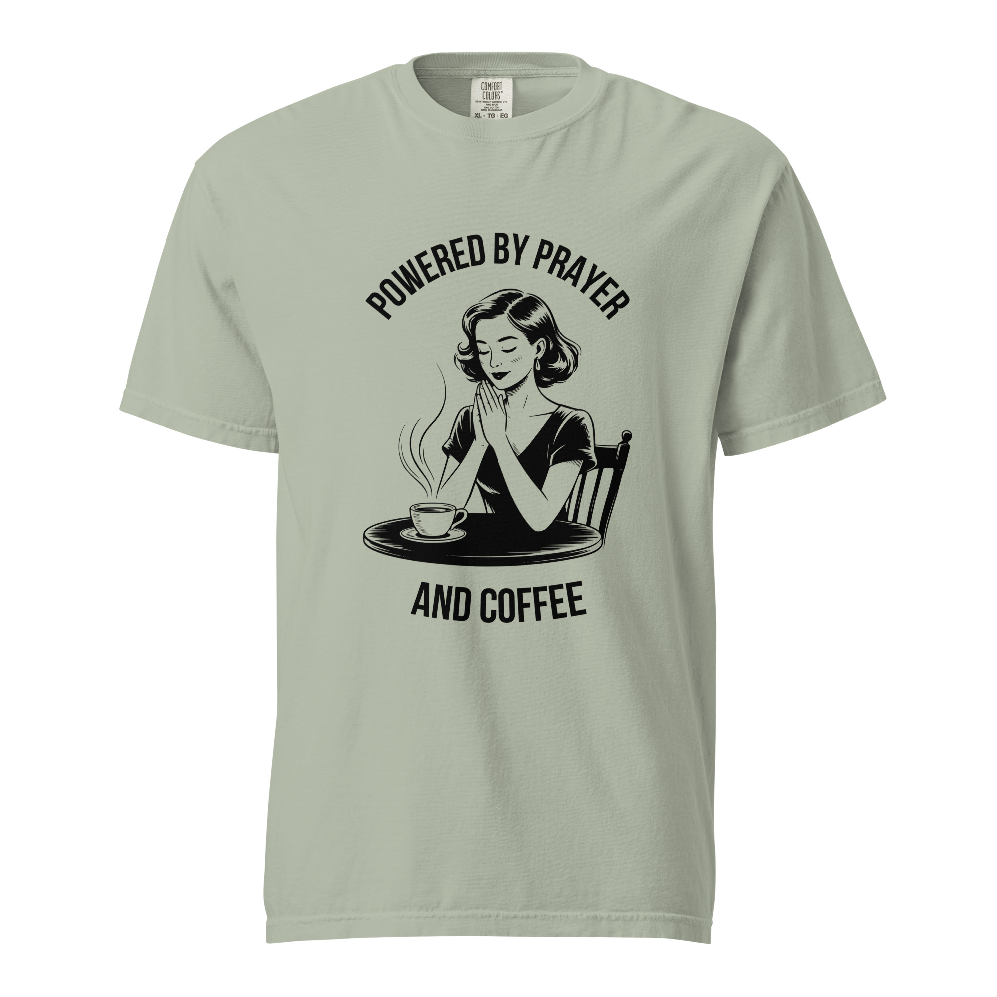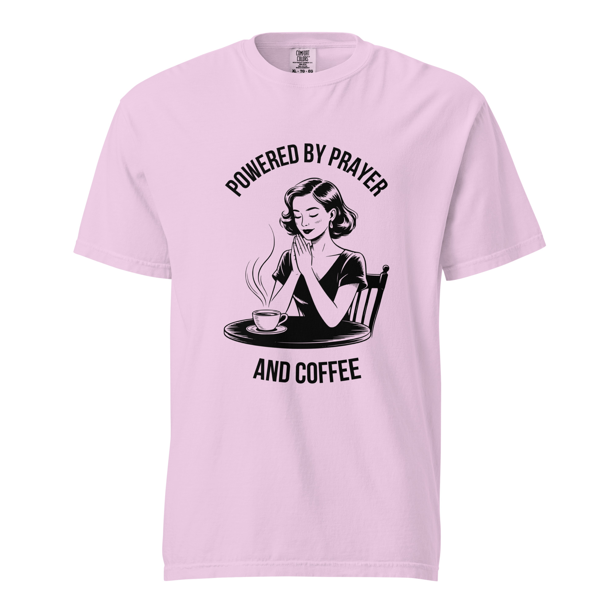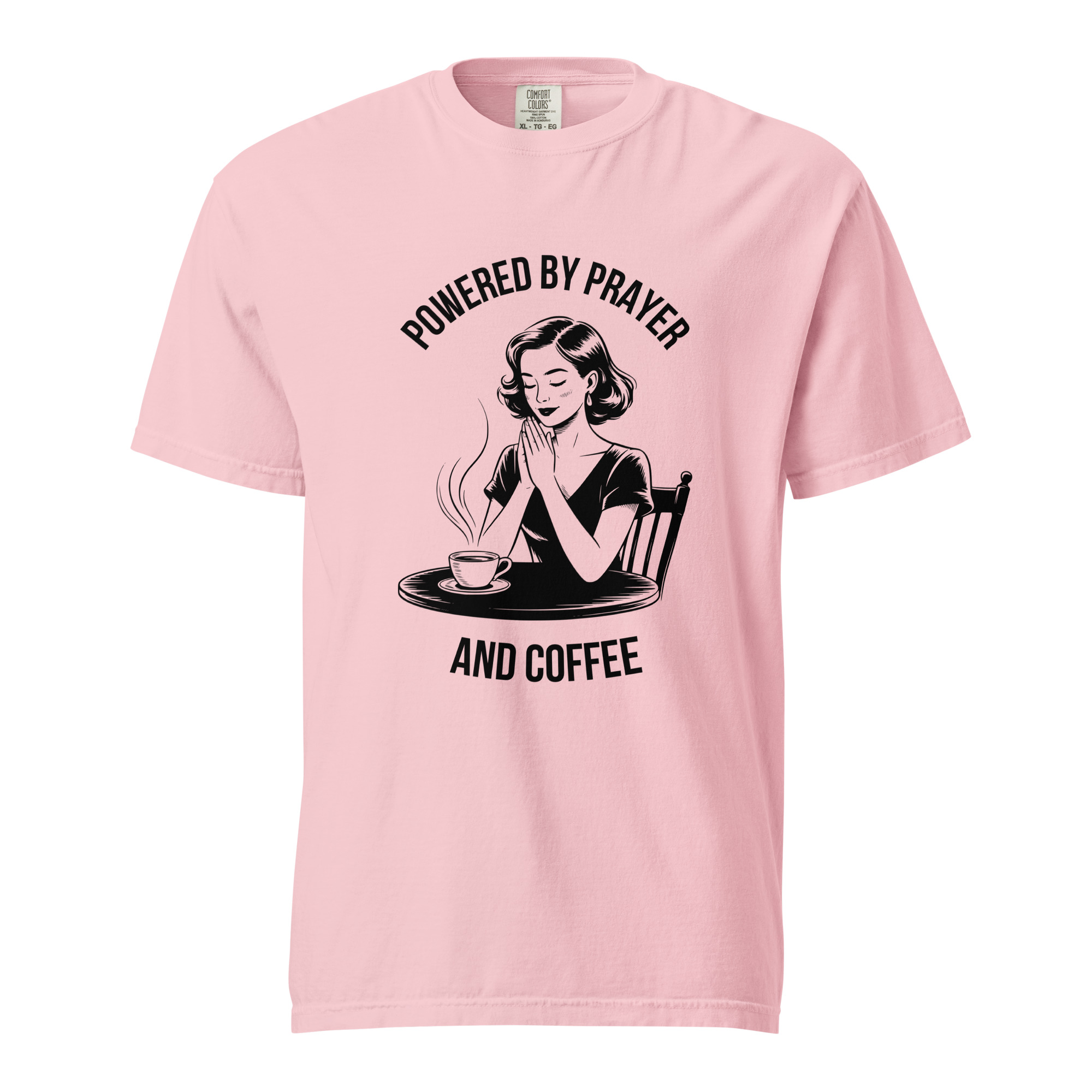 Stay grounded in faith and comfort with this soft-washed Comfort Colors shirt. The vintage illustration reminds you to start each day with prayer and your favorite cup of coffee. Made from premium cotton, it’s cozy, stylish, and full of meaning.