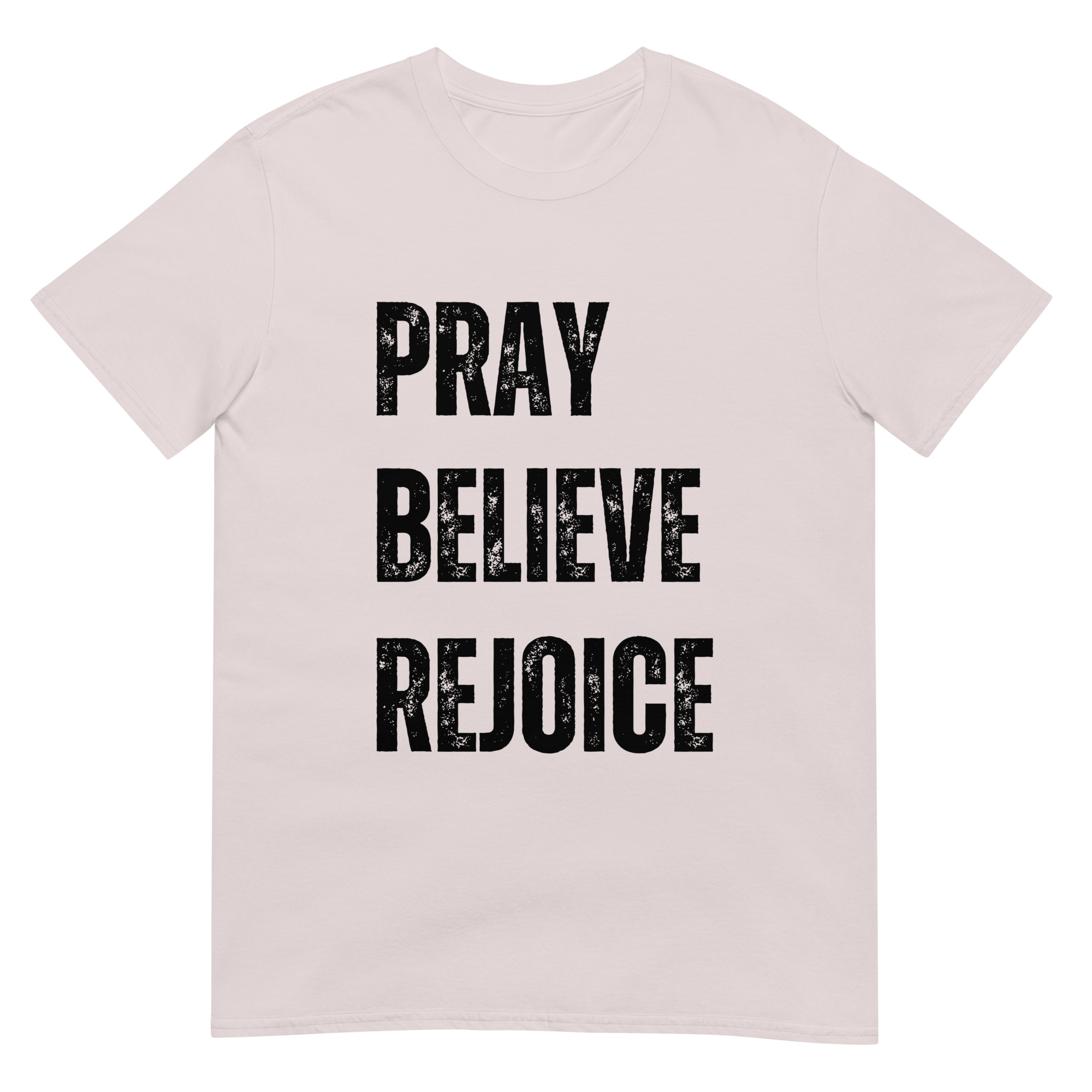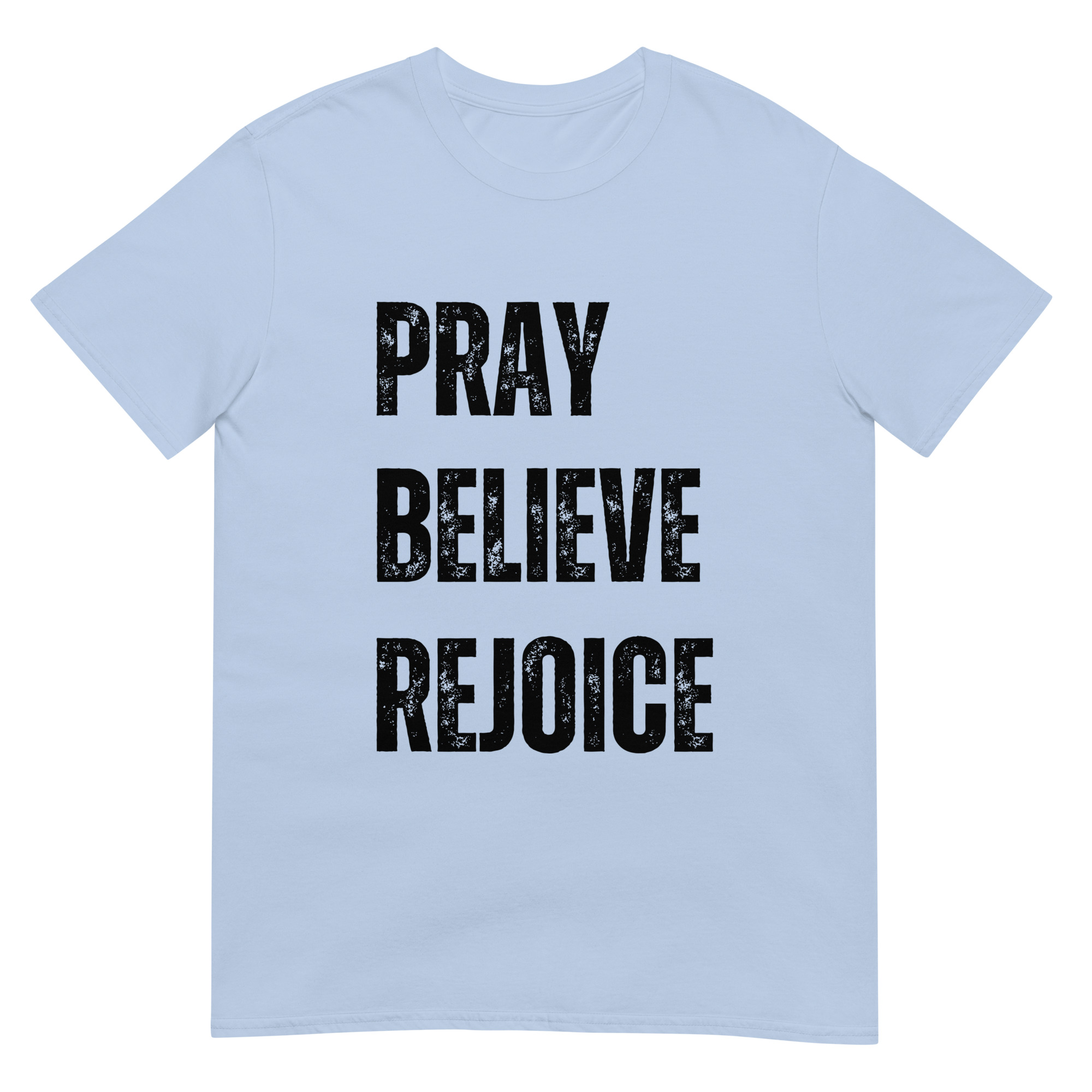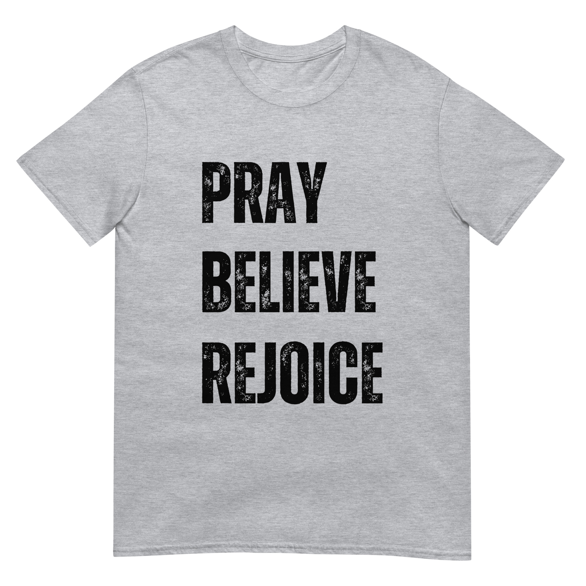 This Pray, Believe, Rejoice t-shirt is a celebration of faith and joy. With a clean, inspiring design, it encourages believers to live with trust and gratitude. Made with soft, durable Gildan 64000 cotton, it’s perfect for everyday wear, worship services, or small group gatherings. A meaningful gift for men and women of faith who want to share encouragement through apparel.