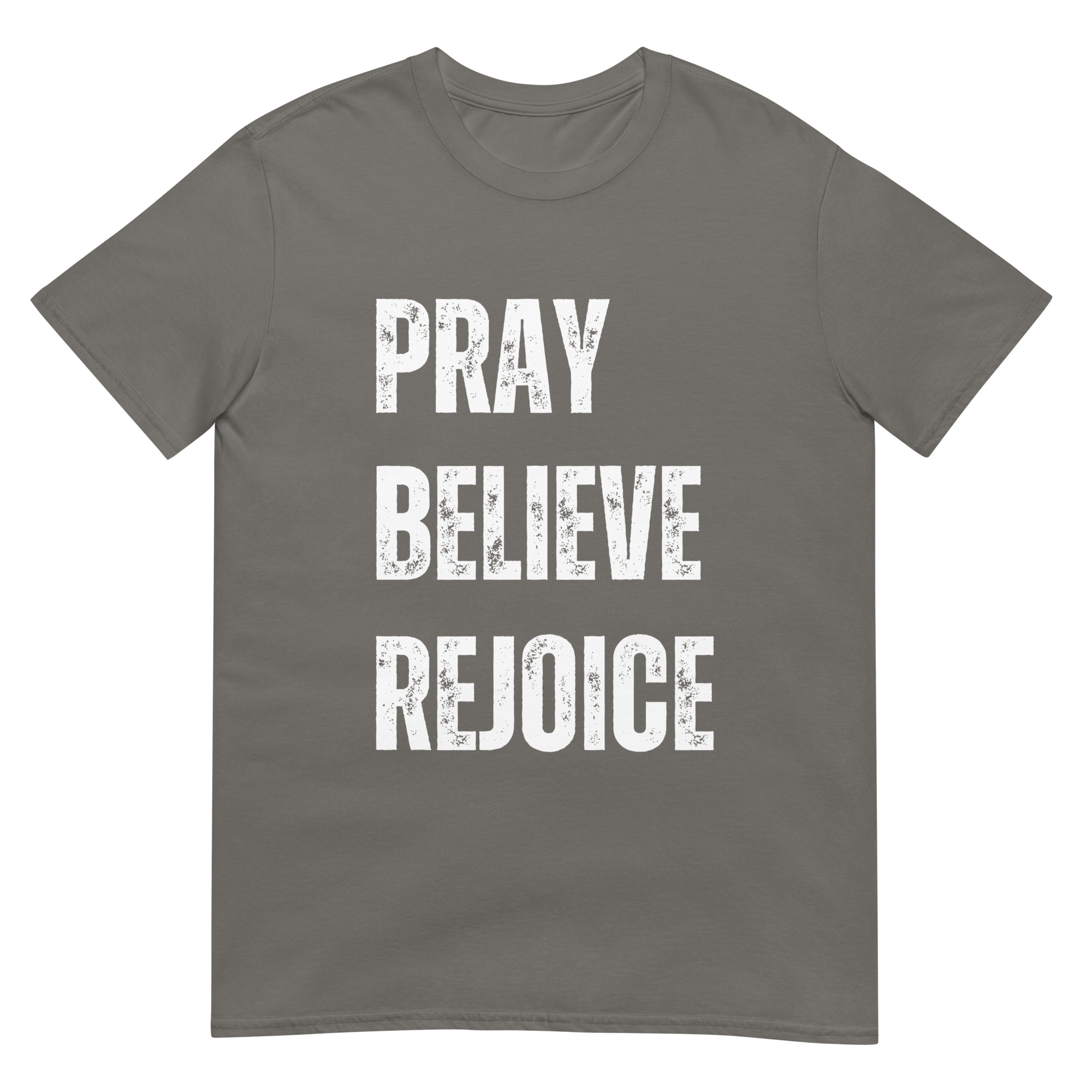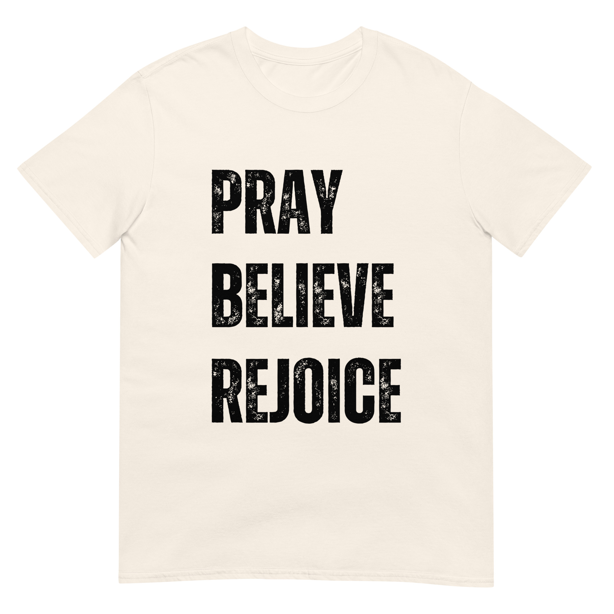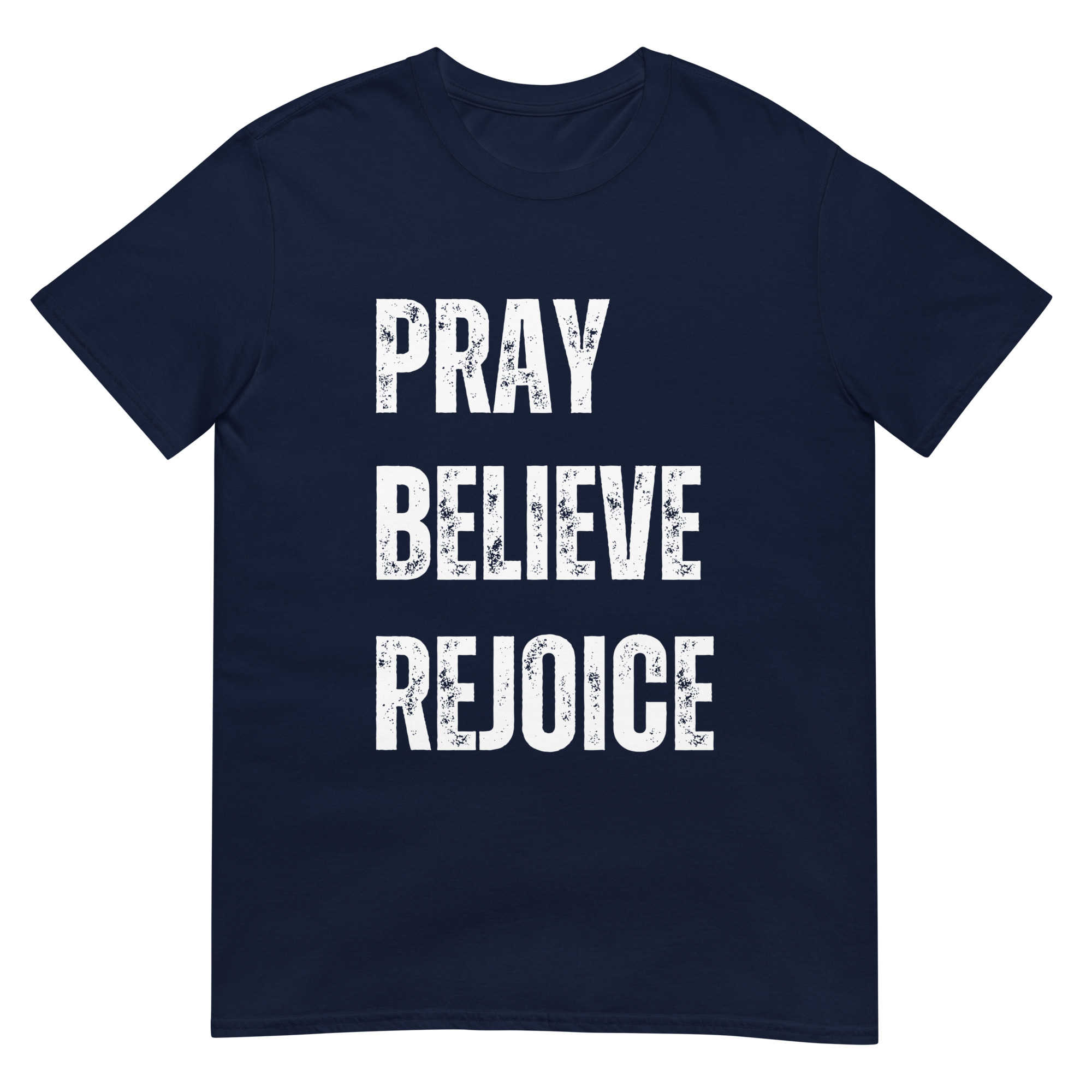 This Pray, Believe, Rejoice t-shirt is a celebration of faith and joy. With a clean, inspiring design, it encourages believers to live with trust and gratitude. Made with soft, durable Gildan 64000 cotton, it’s perfect for everyday wear, worship services, or small group gatherings. A meaningful gift for men and women of faith who want to share encouragement through apparel.