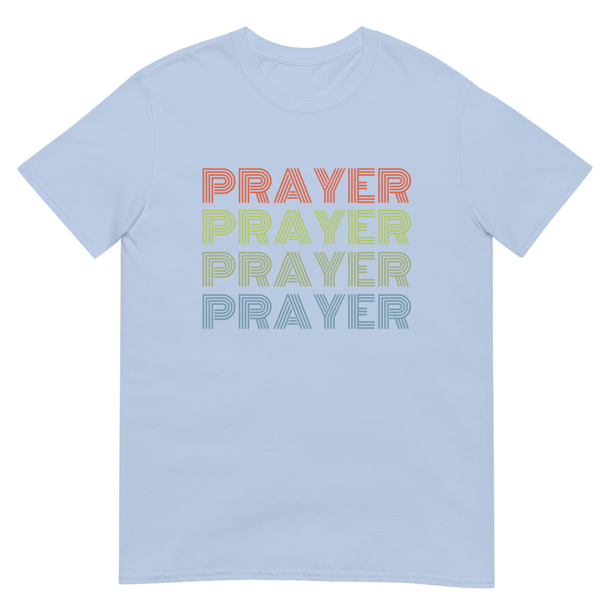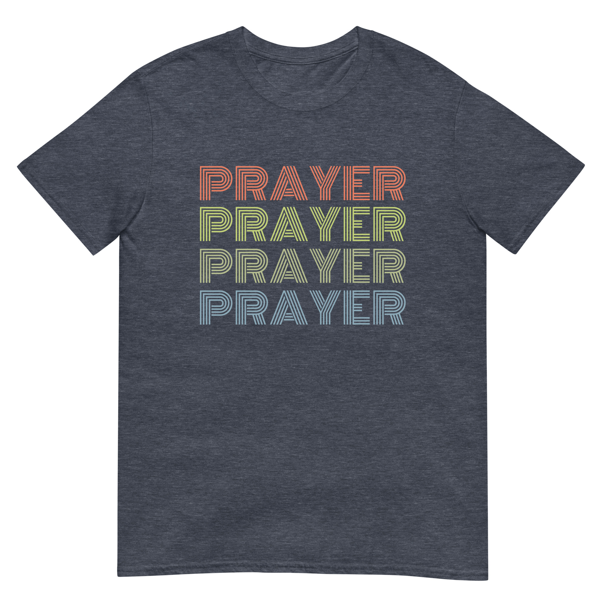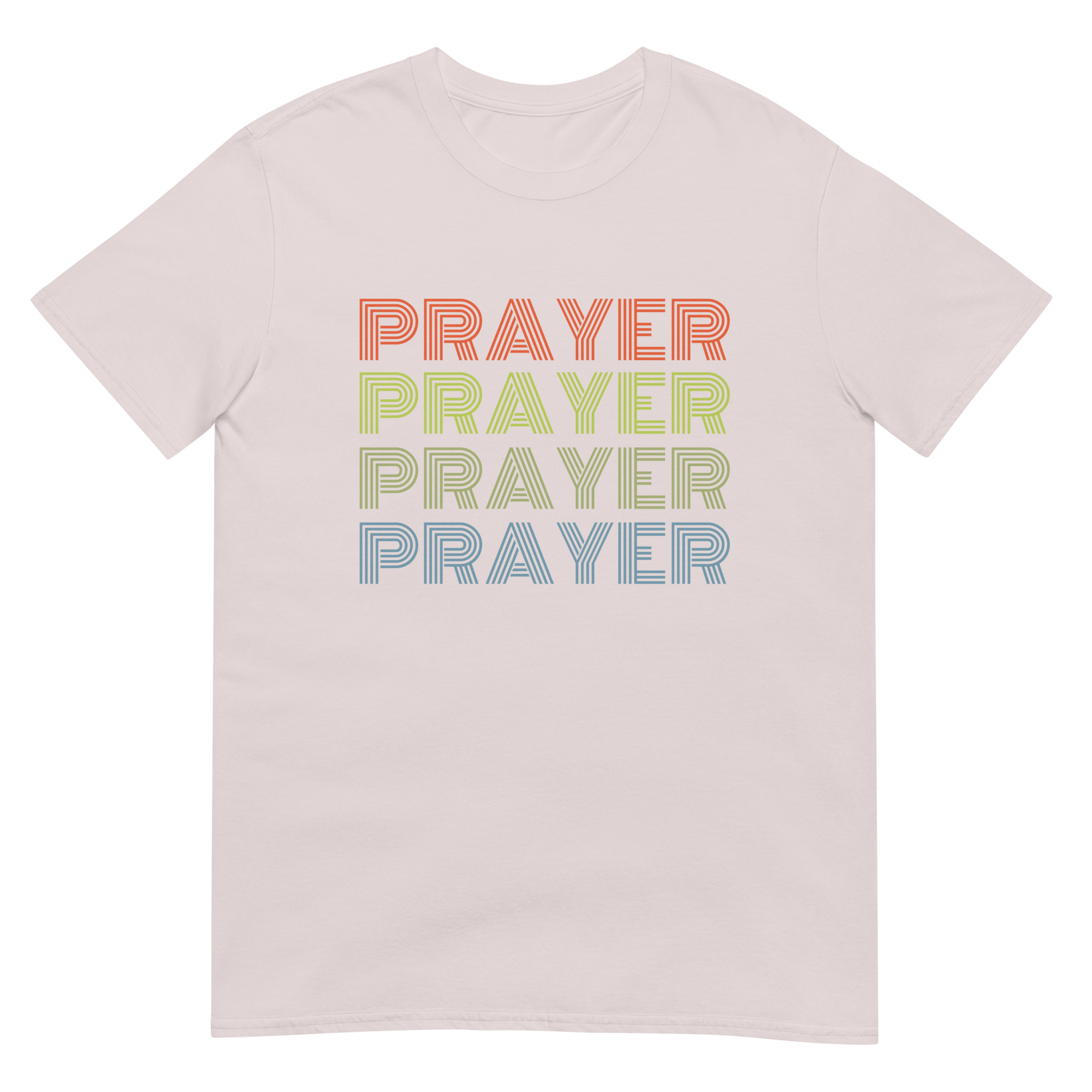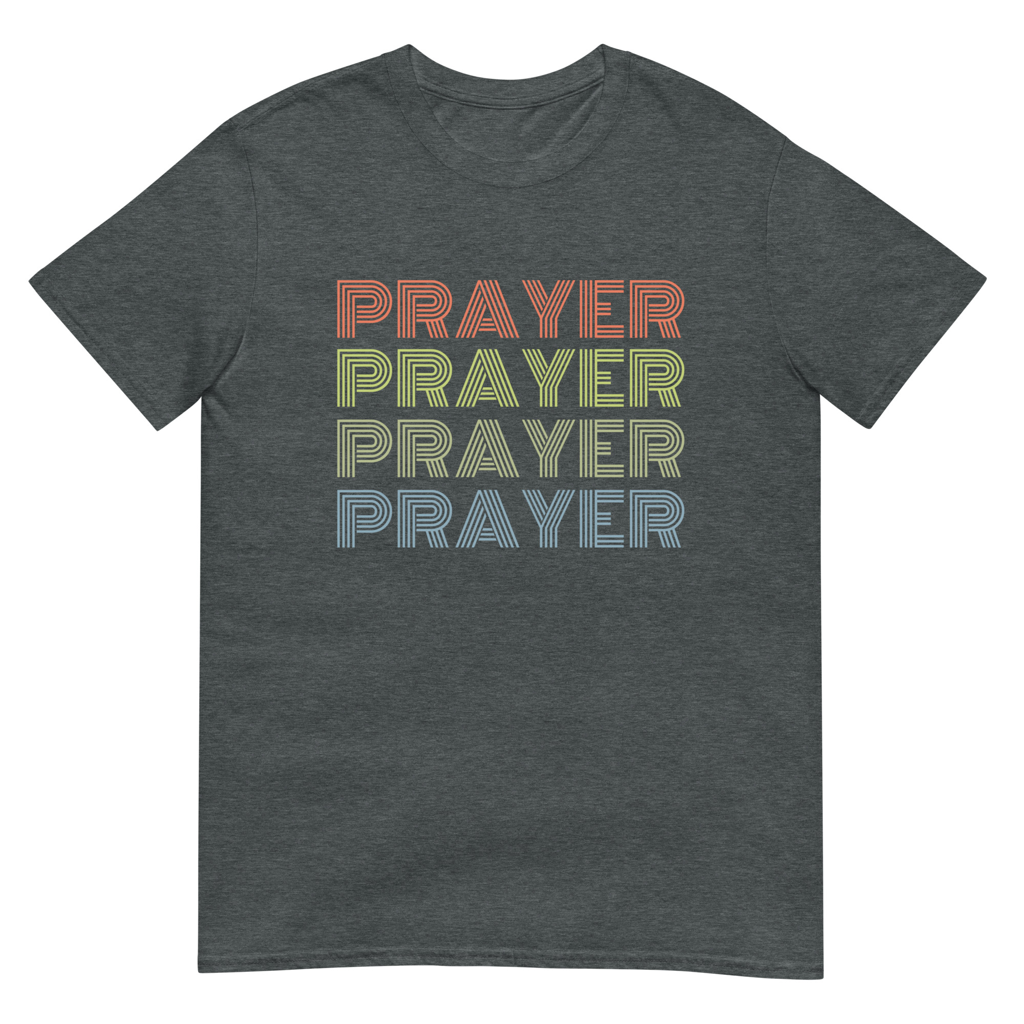 Bring faith and vintage vibes together with this Prayer, Prayer, Prayer, Prayer Christian t-shirt. Designed in a bold 80s-inspired retro font in vibrant colors. This Christian tee combines vintage design with spiritual encouragement, making it perfect for prayer groups, church events, or casual wear. Made with premium Gildan 64000 cotton, this shirt is soft, durable, and comfortable for everyday wear. Perfect for church, prayer groups, or as a unique Christian gift with a nostalgic twist.