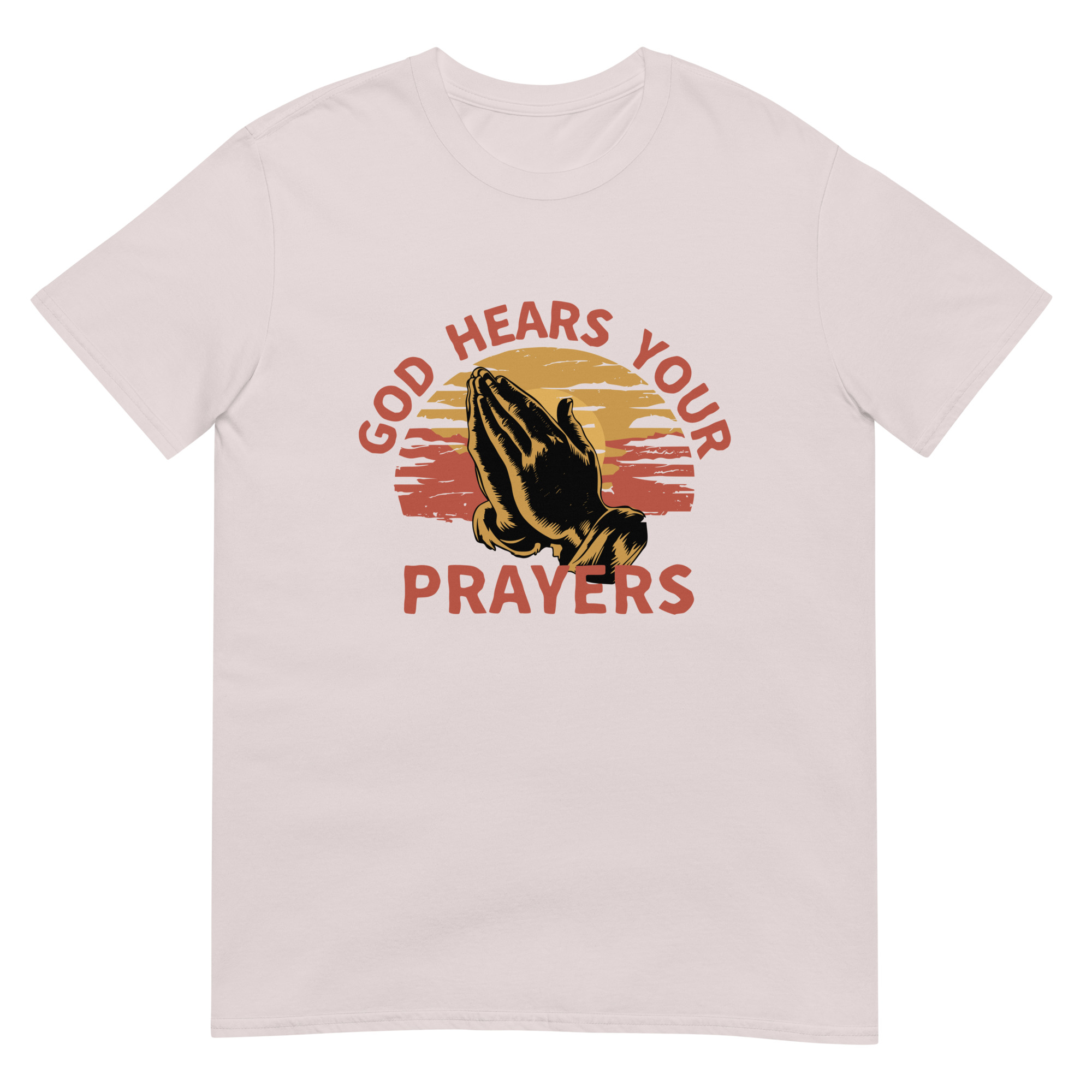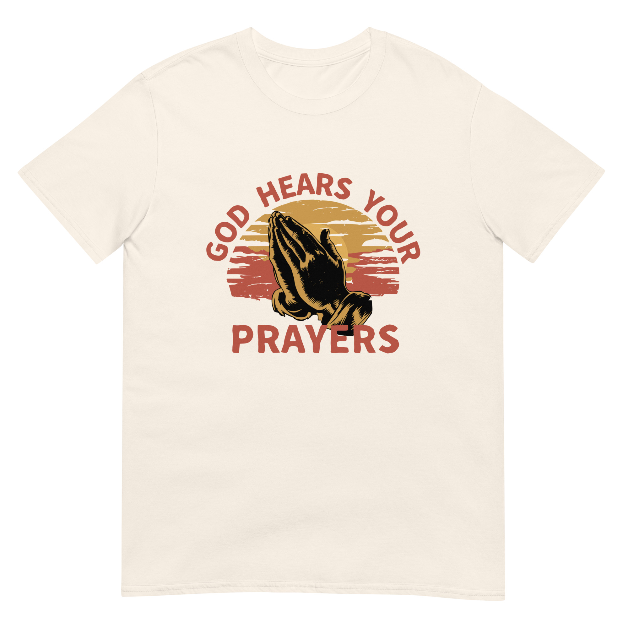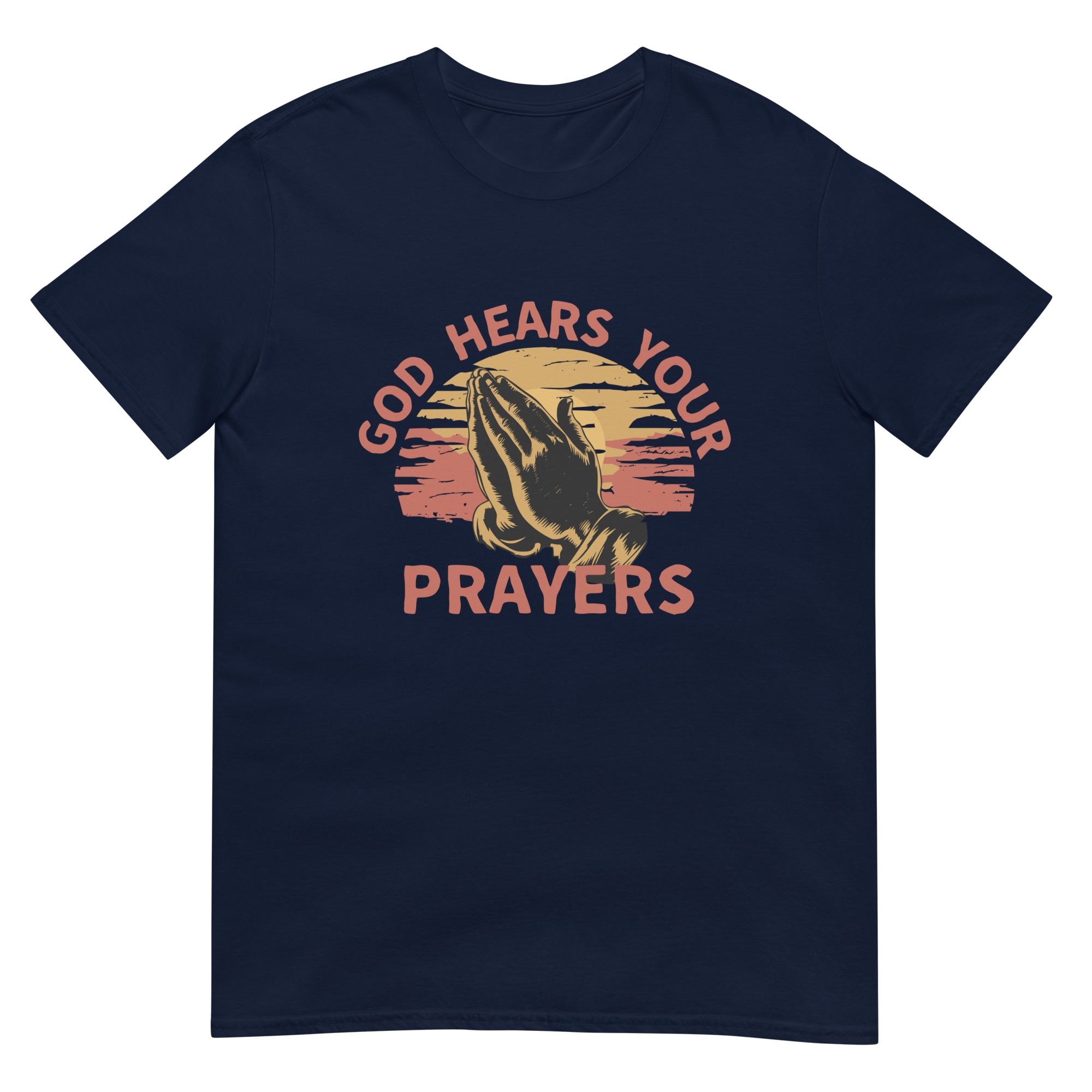 God hears your prayers – Vintage Prayer shirt. Celebrate faith with this beautiful vintage Tee featuring the heartfelt message. Encouraging faith quotes and Vintage biblical design about Prayer. Express your Christian faith with our Prayer T-shirt.