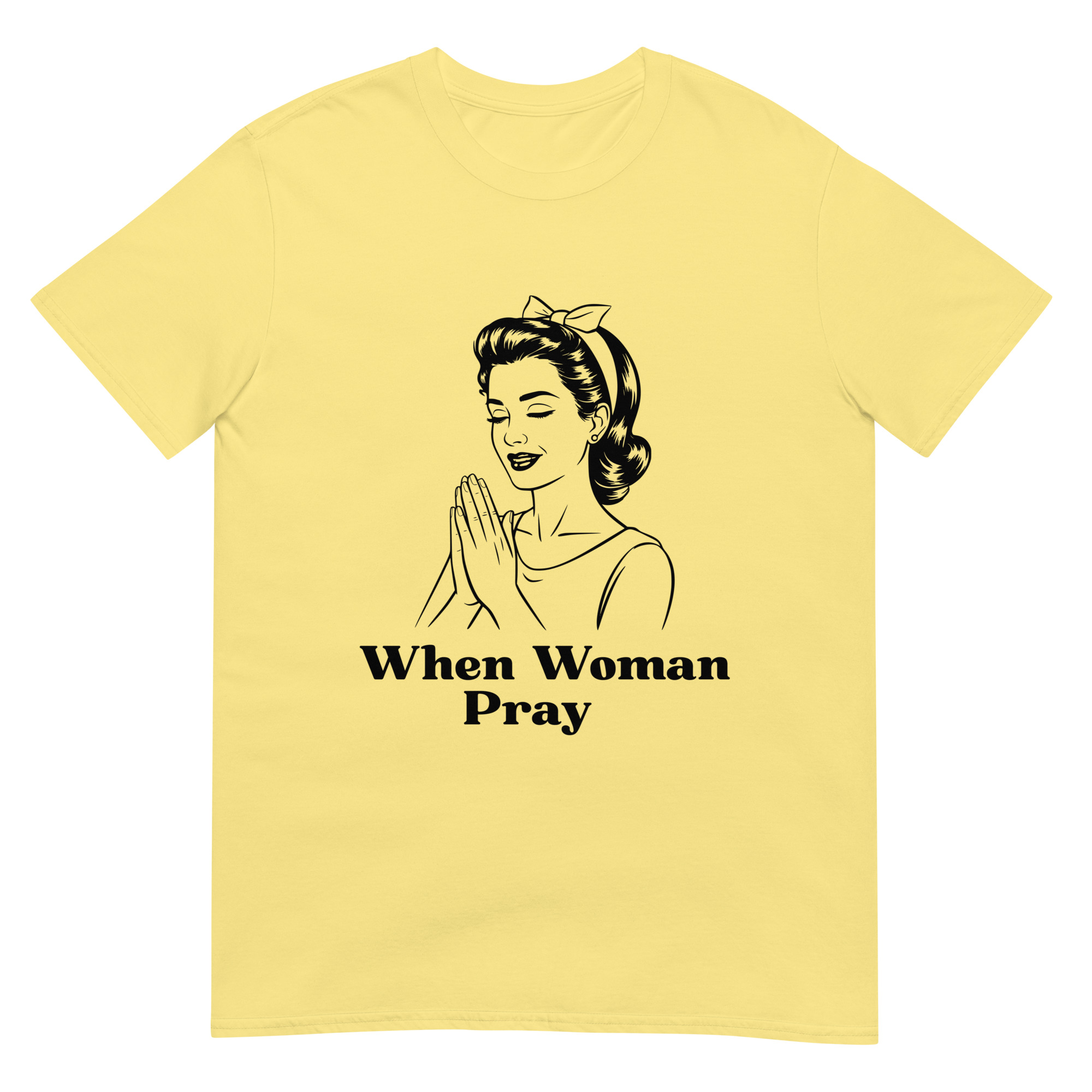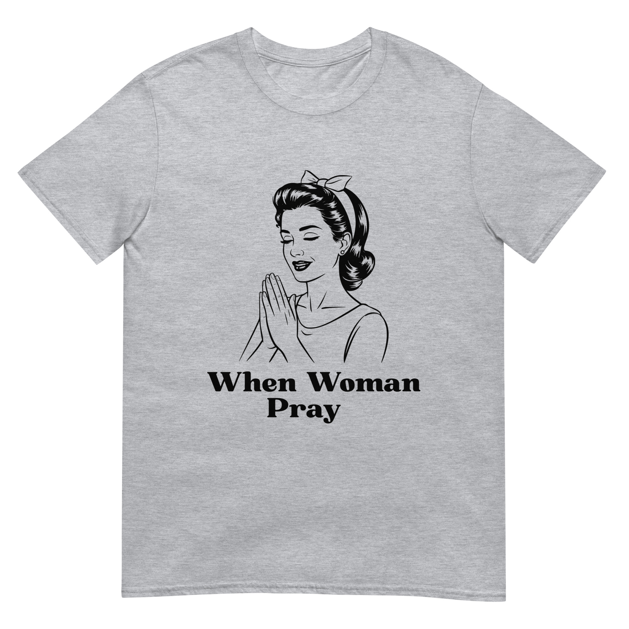 Let your faith speak through fashion. This “When Women Pray” T-shirt features a vintage illustration of a praying woman, symbolizing strength, grace, and divine connection. Made with soft, high-quality Gildan 64000 fabric, it’s perfect for everyday wear, church events, or prayer groups. Inspire others and carry your message wherever you go.